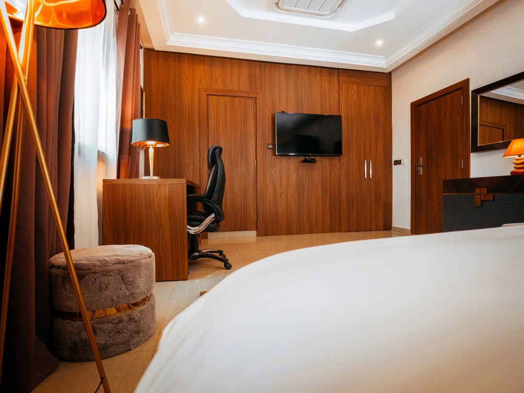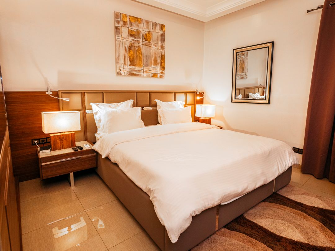 Bienvenue dans notre chambre Deluxe, où le confort et le style se rencontrent pour créer une expérience inoubliable. Conçue avec soin pour répondre à vos besoins les plus exigeants, cette chambre spacieuse offre un havre de paix où vous pourrez vous détendre et vous ressourcer.